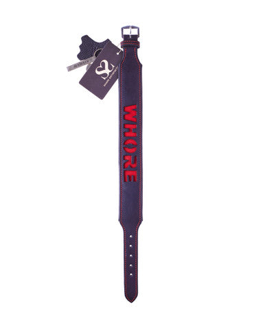 One of the most meaningful and practical toys that can be used in BDSM play or relationships with a dom/sub dynamic, the humble collar is one of the most popular leather products around. This luxurious collar has the word ‘whore’ carved into the thick saddle leather making it the perfect accessory to show your sub their place in the bedroom. The red letters and contrast stitching bring a pop of colour to this classic black collar - it really is an eye-catcher! This collar looks fantastic paired with similar bondage pieces or can be equally enjoyed worn alone. The high-quality saddle leather used in the handcrafting of this collar ensures that it is strong enough to withstand anything and if properly looked after it will last you a lifetime.
